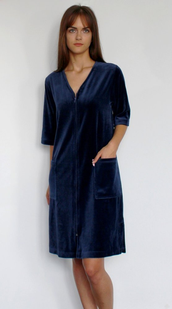 431 Дамски халат от велур Forex - тъмносин