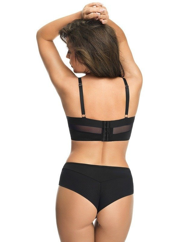 Феноменален push-up сутиен push-up с подплата, изработен от лъскава материя, в горната част деликатна мрежа от тюл, подплатена с бежова материя. Има регулируеми раменни презрамки, които не могат да се свалят. . Стабилна обиколка, със странична китова кост. Широк гръб с 6 закопчалки с 3 стъпки за регулиране на подгъва.