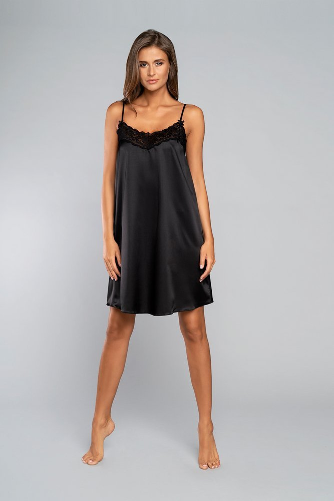 Докосване на нощницата с тясна презрамка, къса Italia Fashion - черна