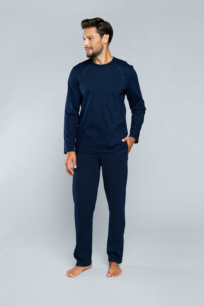 Niko Мъжка пижама с дълъг ръкав и дълъг панталон Италианска мода - тъмносиньо