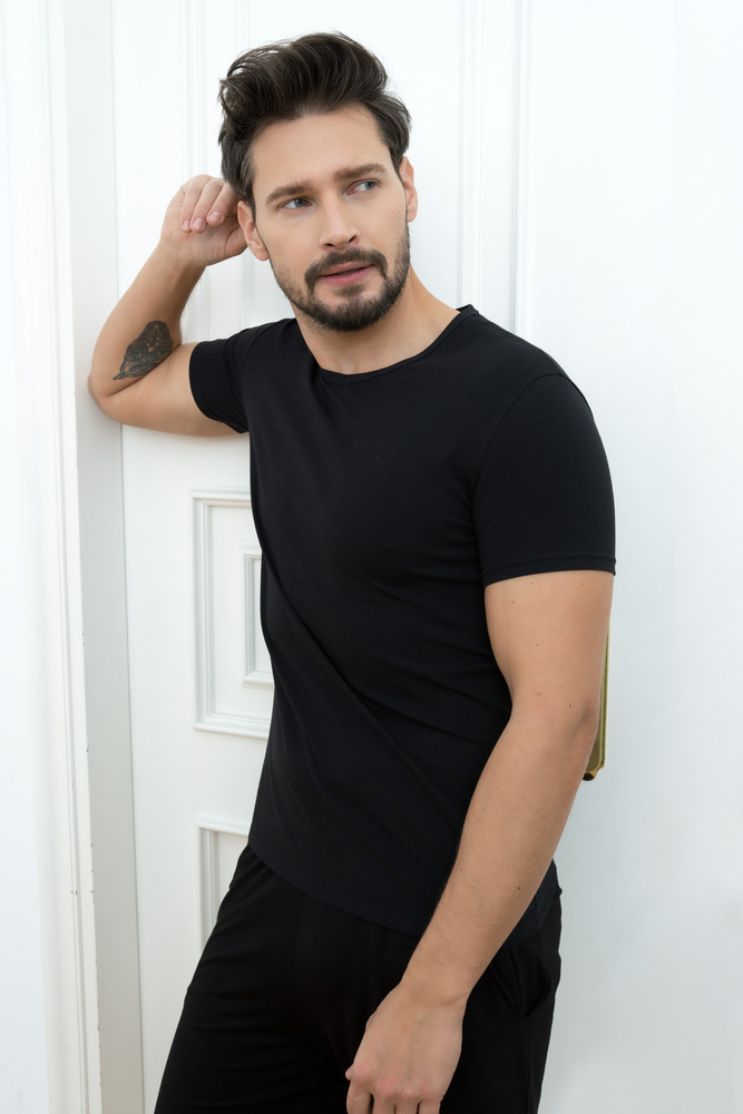 Ikar Мъжка тениска с деколте италианска мода - черна