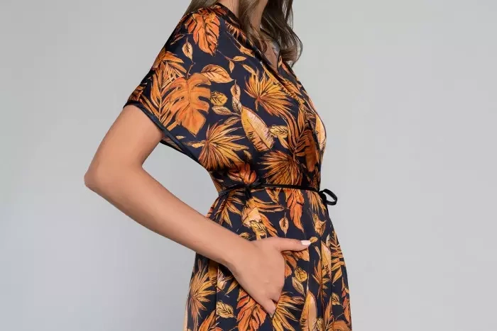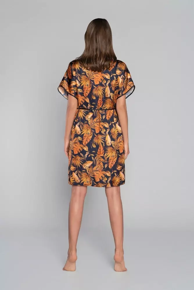 В наситено красиво черно, което чудесно кореспондира със златисто-червения принт на есенни листа, и красив лъскав фин сатен, халат Monstera е синоним на лукс и елегантност. С риза или пижама със същото име ще създадете уникален комплект и никой няма да може да откъсне поглед от вас дори у дома.