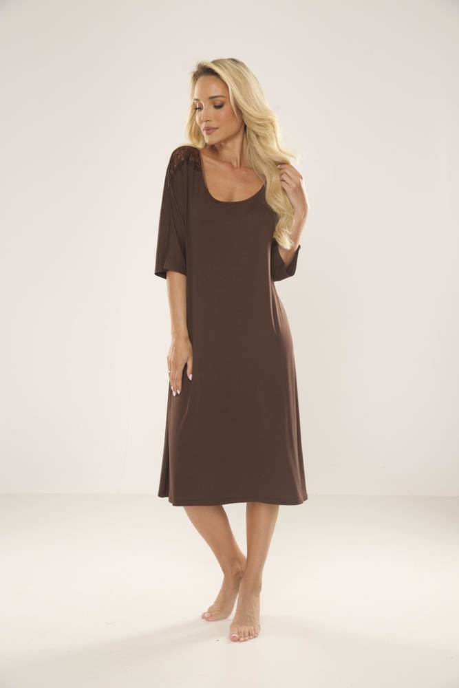 Дамска риза, изработена от висококачествена, приятна вискоза. Риза с 3/4 ръкав, украсена с дантела. Много удобна кройка, нежно прилепнала към тялото. Той ще се хареса на жените, които обичат мекотата и свободата.