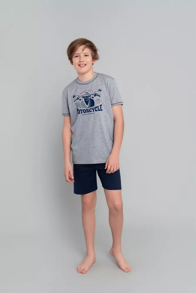 Пижама за момчета Gibson с къс ръкав, панталон Италианска мода - меланж
