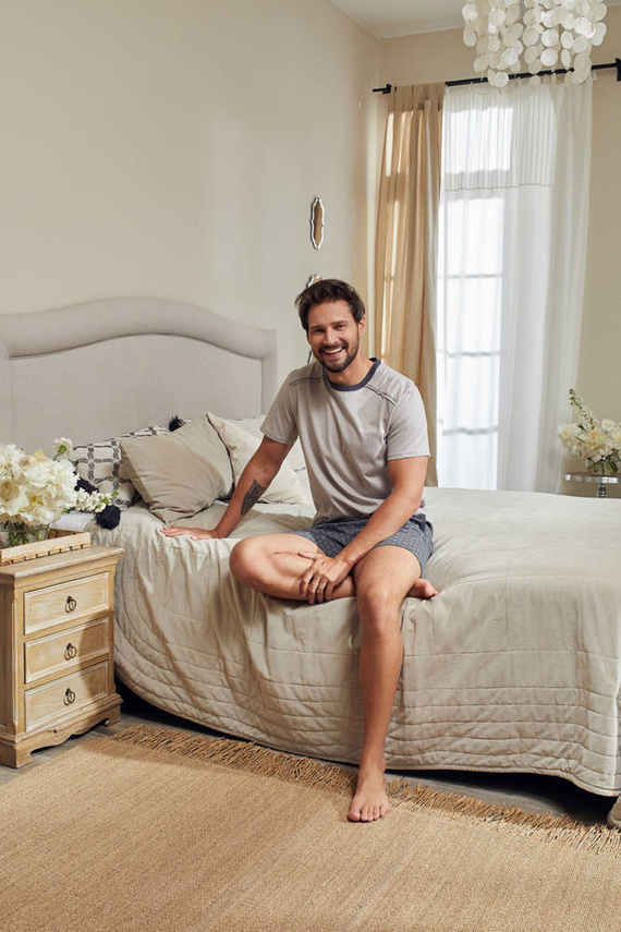 Универсални мъжки пижами, които впечатляват със своята простота и минимализъм. Това е перфектната комбинация от класически, спокойни цветове с нотка лудост под формата на ромбове. Интересен елемент са шевовете в контрастни цветове, които придават модерен вид.