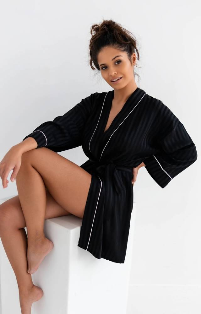 Дамски халат, изработен от приятна за тялото материя. Модел с дълъг ръкав . Халатът се съчетава перфектно с риза или пижама, налични в колекцията ни с нощни дрехи. Халатът, завързан под бюста, е идеален за бременни жени и кърмачки.