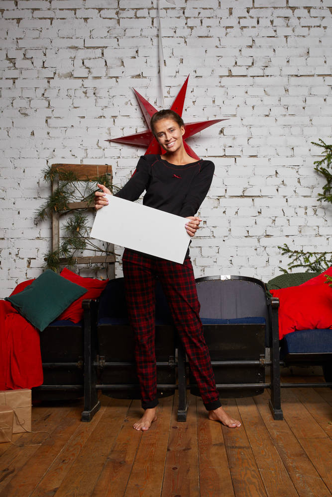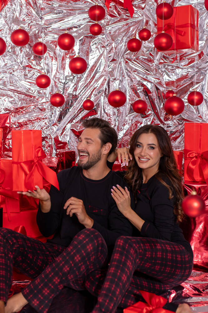 Класическата, семпла кройка на пижамата Ordesa е зимно предложение за жените. Завладява с фината си и деликатна кройка. Въпреки наситените, дълбоки цветове, цялото произведение има много лек и приятен характер. Черната блуза с дълъг ръкав е украсена с малка панделка и подгъв около деколтето в червено. Минимално заострената кройка на блузата красиво подчертава талията и женствения силует. Горнището на пижамата е дълъг панталон, ушит от червено и черно карирано трико, завършващ с черен маншет. Гумата без налягане прави продукта изключително удобен и комфортен.