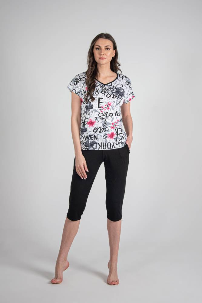 Пижама от две части на De lafense, изработена от висококачествена вискоза. Идеален за добър сън през нощта и чудесно начало на деня с първото сутрешно кафе. Тениска с къс ръкав, шарена. Униформен панталон 3/4.