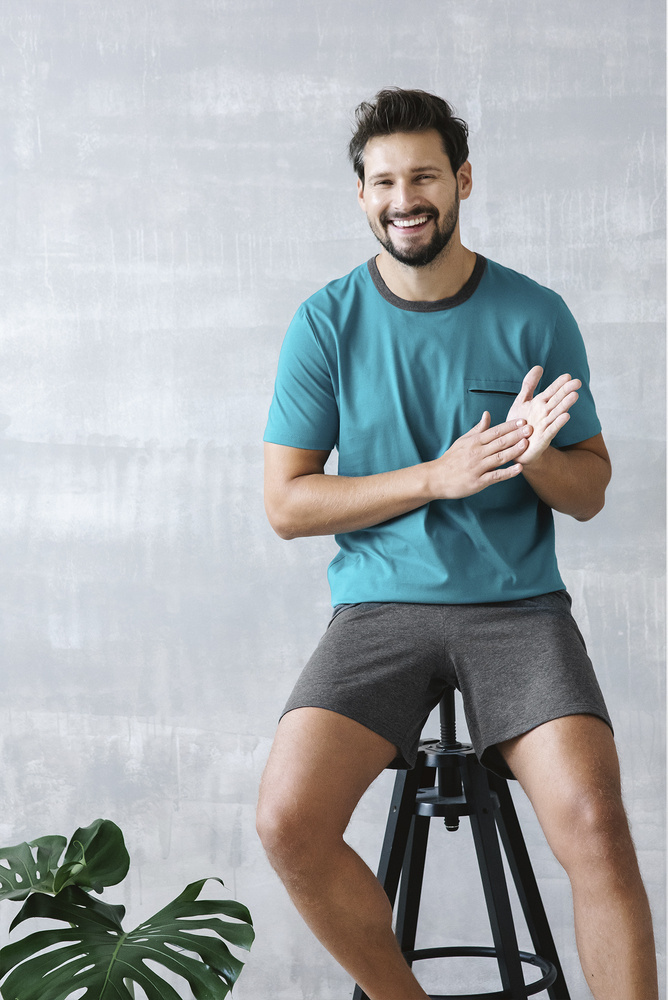 Stefano Мъжка пижама с къс ръкав, къси панталони Италианска мода - морски/тъмен меланж