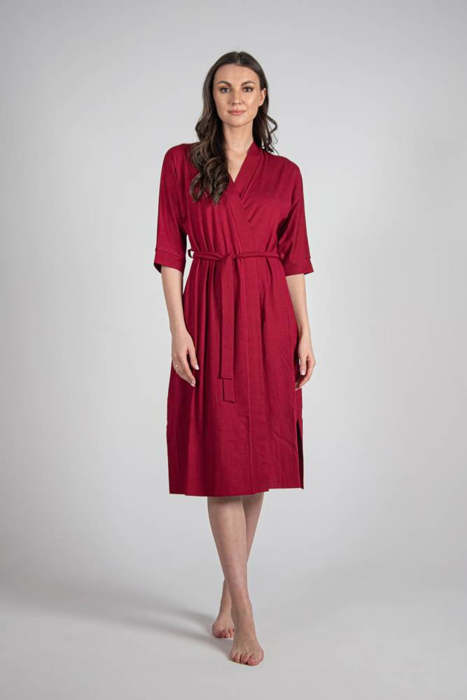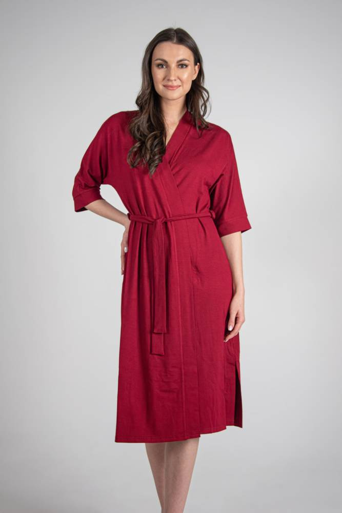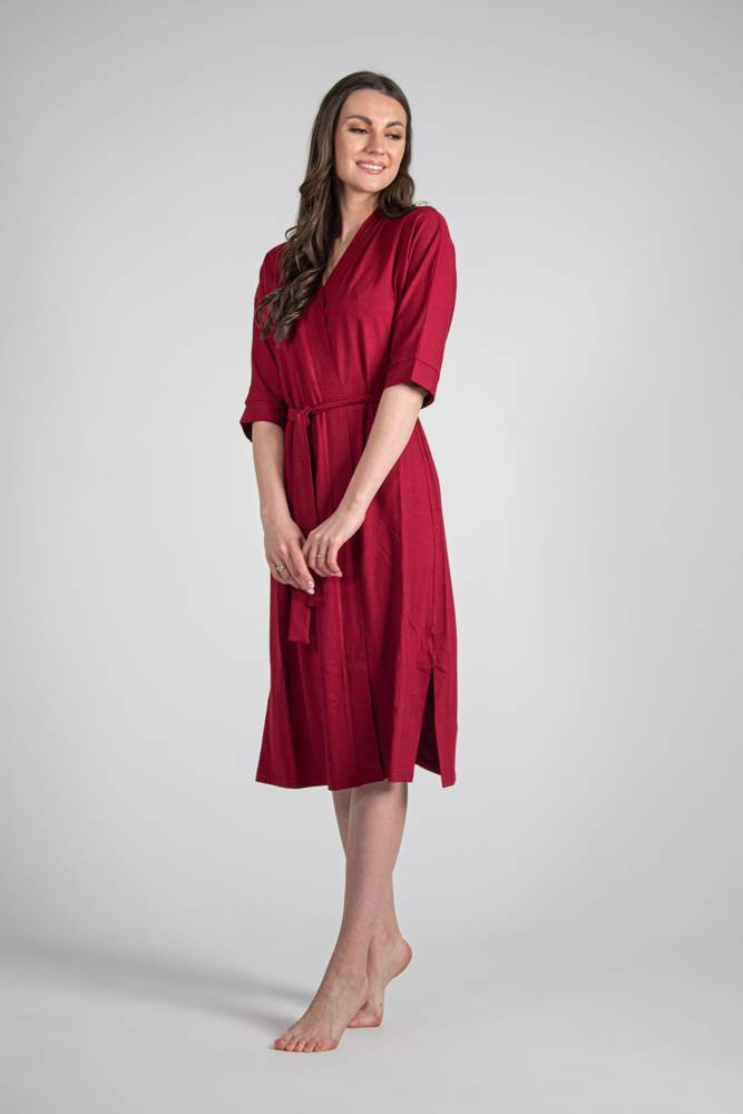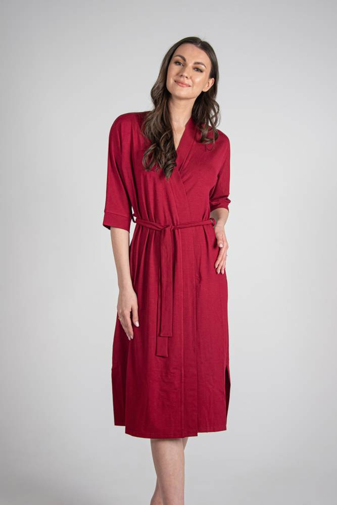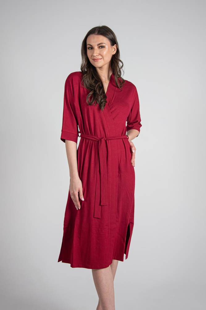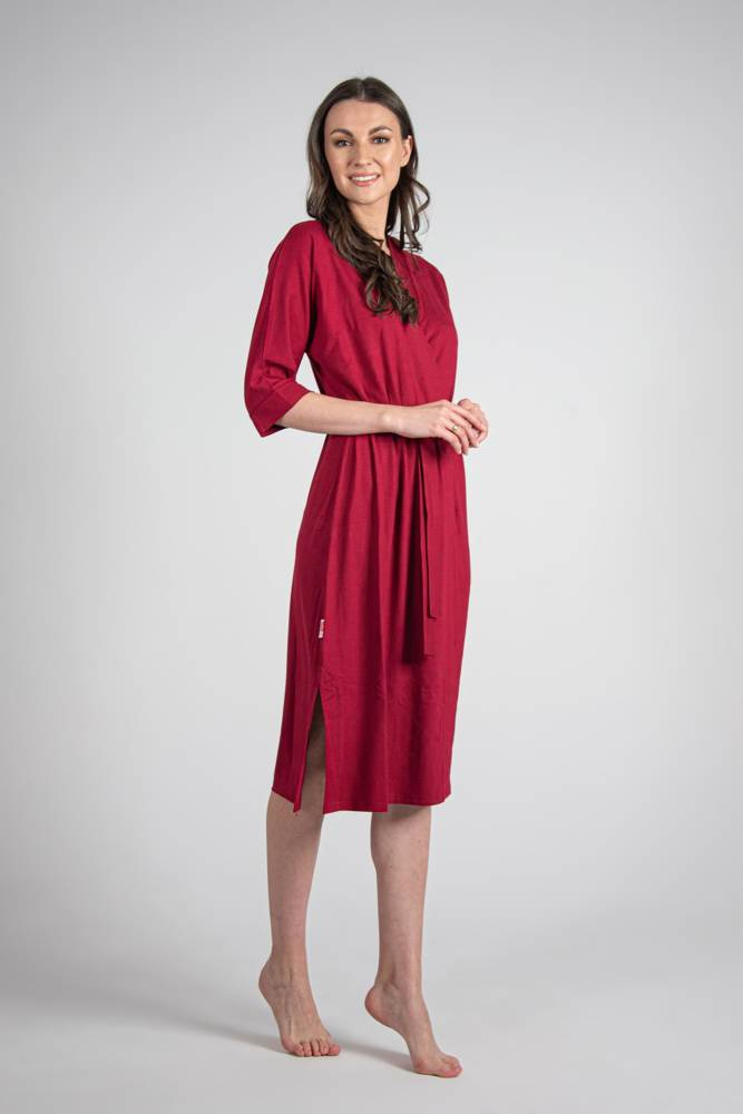 Моделът с по-дълга кройка обгръща перфектно тялото, а 3/4 ръкавите и връзката на талията подчертават талията, като придават лекота и женственост на цялостната визия.