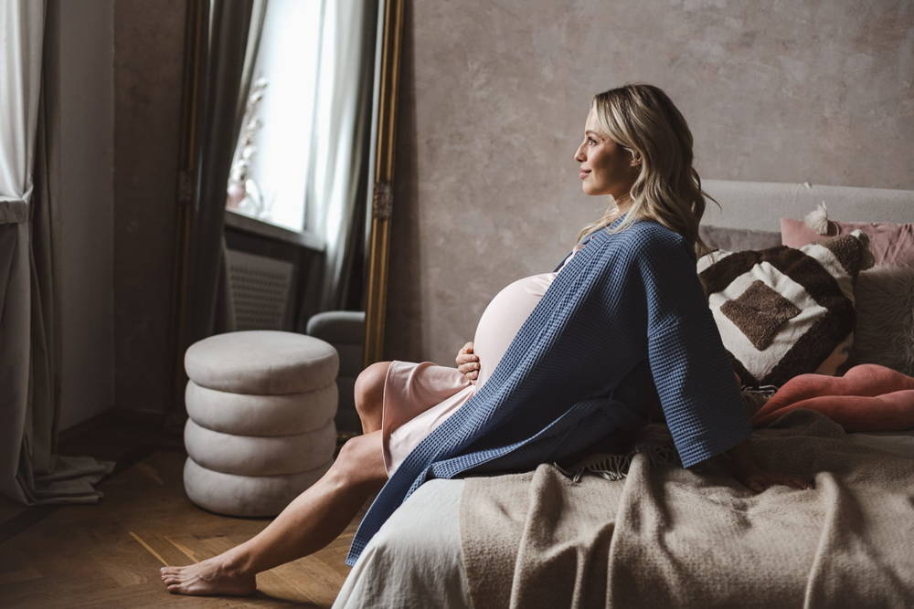 Szlafrok został zaprojektowany z myślą o mamach, dlatego jest nieco dłuższy, abyś spokojnie okryła nim ciążowy brzuszek. Po porodzie bez skrępowania b będziesz mogła spacerować po szpitalnym korytarzu lub na leżąco nakarmiła maluszka w połogu. Posiada kieszenie na niezbędne drobiazgi i pasek do regulowania szerokości.