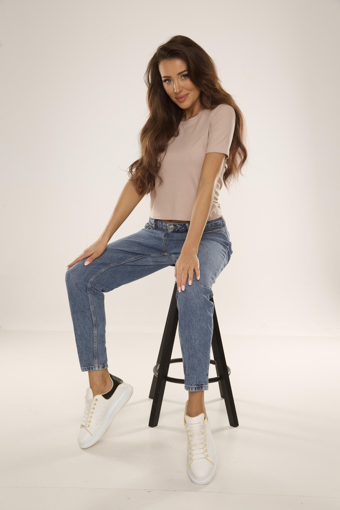 Тениска от висококачествена оребрена вискоза. Модел с къс ръкав. Свободна и удобна форма. Материалът е изключително издръжлив и устойчив на разтягане и изтриване на цветовете, което гарантира дълготрайно използване на тениската.