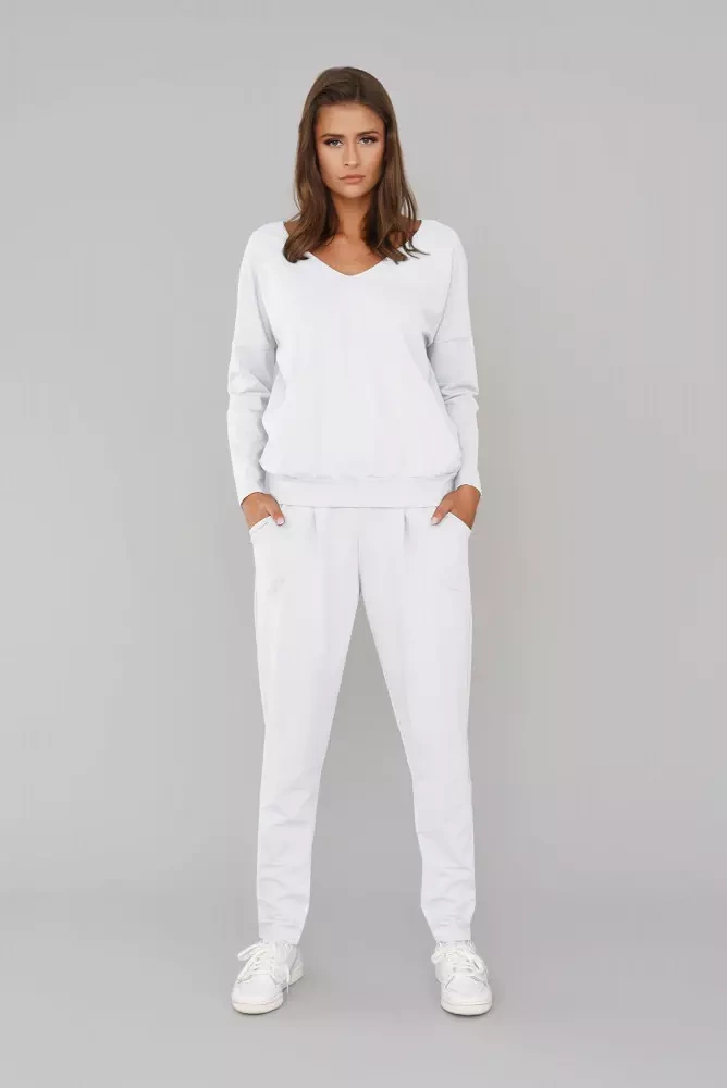 Karina Дамски комплект с дълъг ръкав и панталон Италианска мода - бял