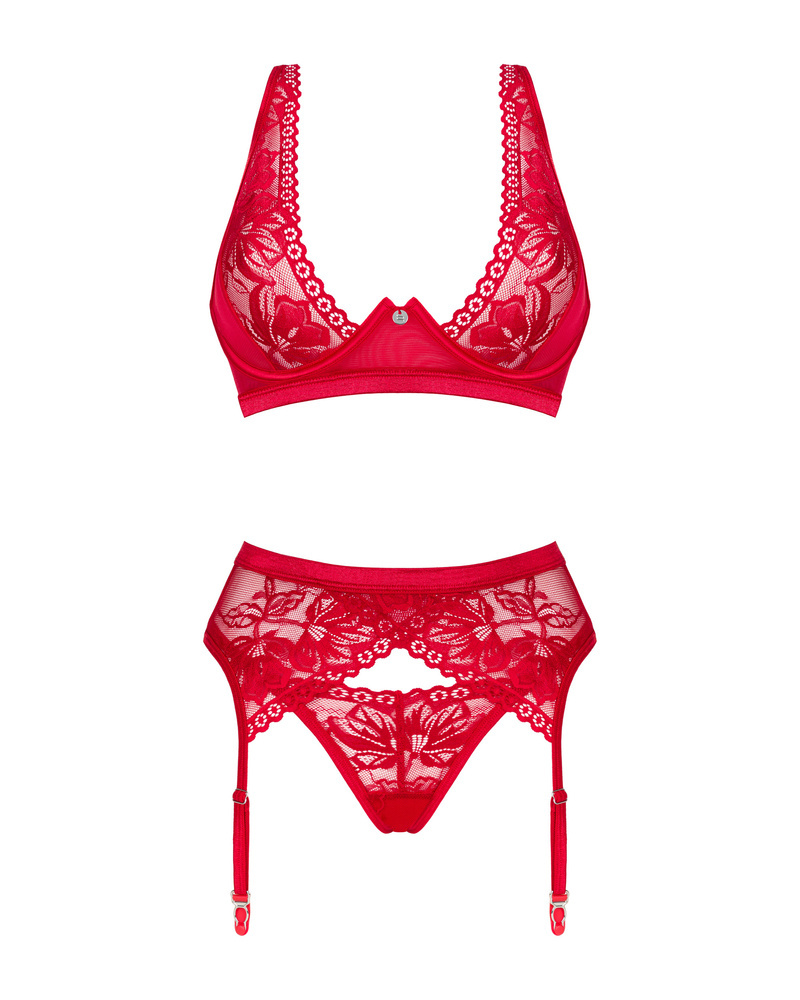 Lacelove Komplet 3-częściowy Obsessive - czerwony