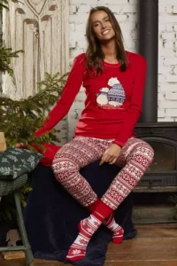 Arktyka Дамска пижама с дълъг ръкав и дълъг панталон Италианска мода - червено/принт